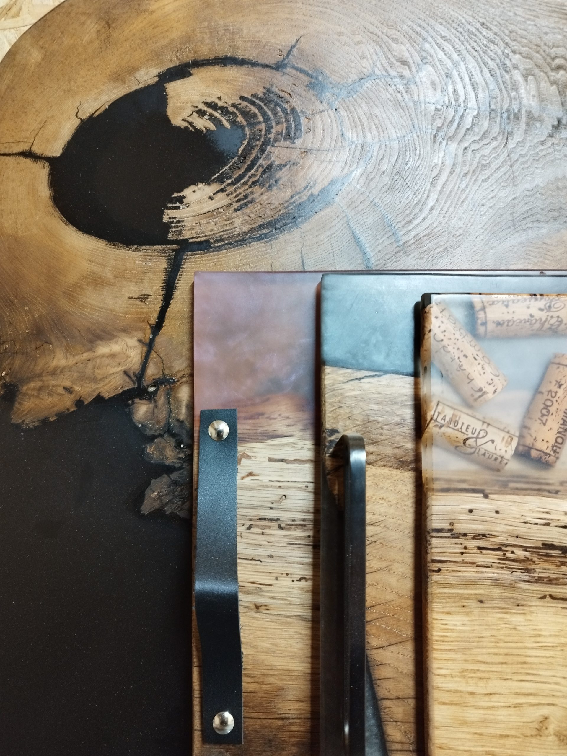 Vous décidez de tout pour votre projet : dimensions, essence de bois, coloris de la résine, effets, opacité, finition…